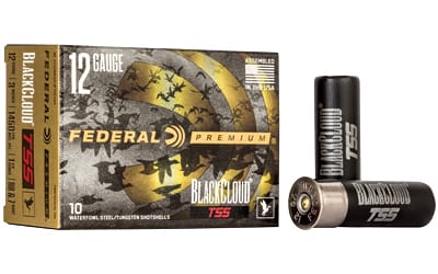 Federal’s Black Cloud TSS carries on a lethal legacy, blending proven FLITESTOPPER Steel pellets and 18 g/cc Tungsten Super Shot. With 56 percent higher density than lead and more than double the density of steel, TSS pellets maintain velocity farther, hit harder and penetrate deeper than any waterfowl payload ever has. The swarm of shot leaves no chance with the Flightcontrol Flex wad, which opens from the rear for a controlled release of the payload for the most consistent patterns.